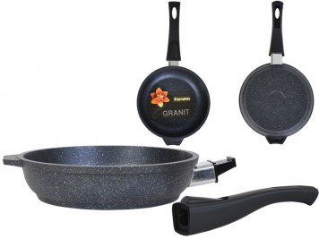 Ненагревающаяся съёмная бакелитовая ручка сэкономит место при хранении и позволяет использовать сковороду (Без ручки!) для запекания блюд в духовом шкафу.